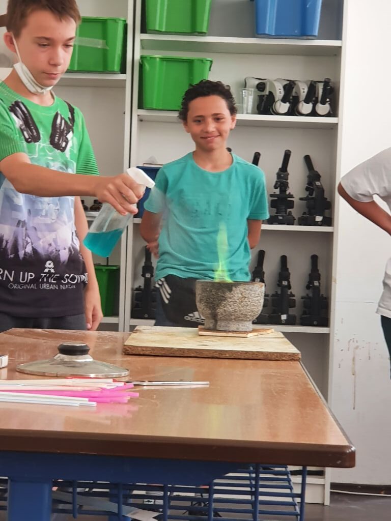 Die Schüler und Schülerinnen waren mit „Feuer und Flamme“ dabei und erlebten zum Schluss einen spektakulären Feuerball.