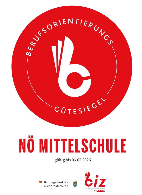 Auch dieses Jahr konnte die Mittelschule Schwechat Frauenfeld das BO-Gütesiegel der WKNÖ, ein Zertifikat im Bereich Berufsorientierung, wieder erwerben.