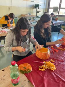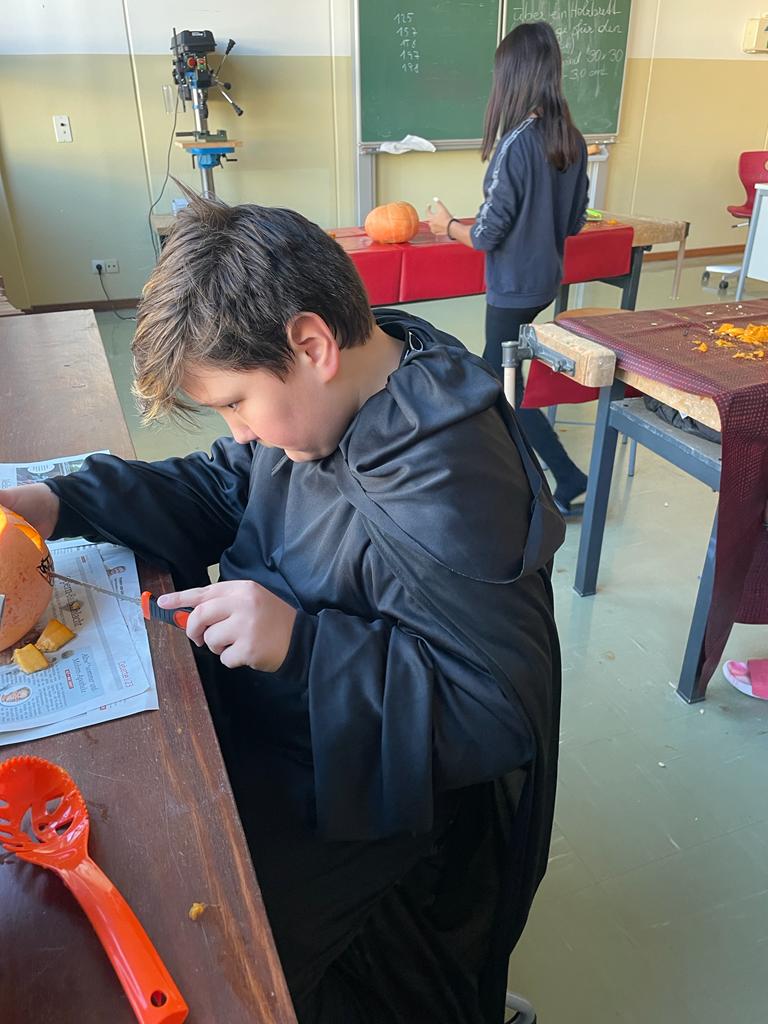 Werken in der 2c: Kürbisschnitzen mit scharfem Werkzeug!