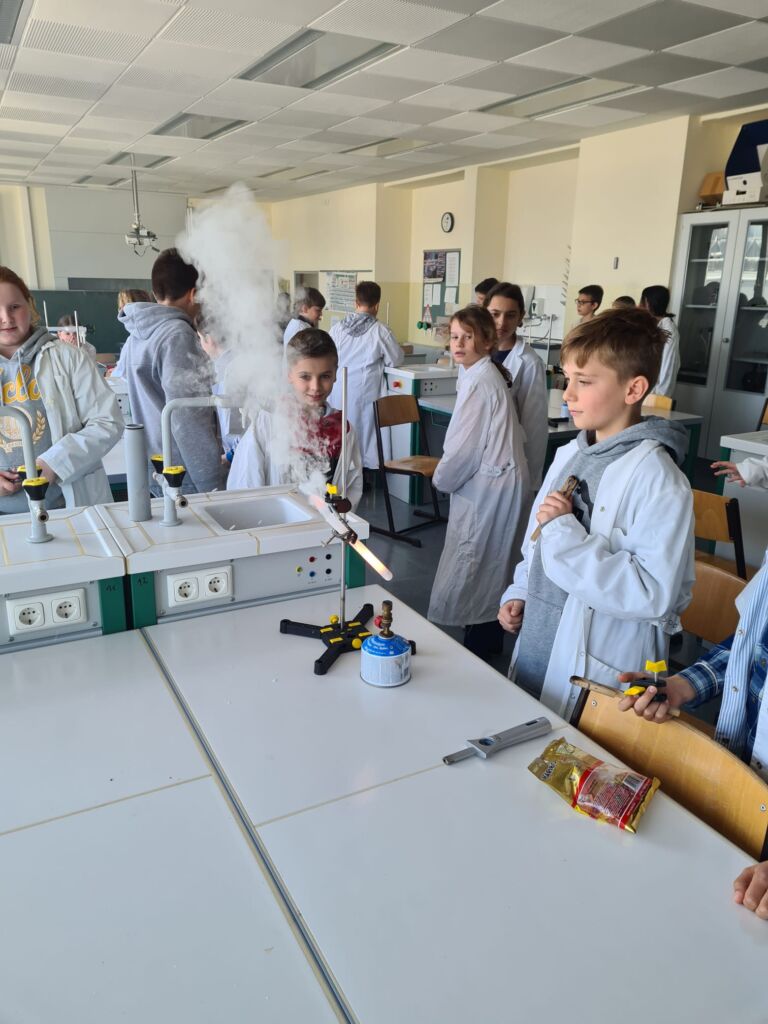 Wir lernten heute etwas über die Ernährung kennen, welche Rohstoffe und welche Energie in einem Gummibärchen stecken. Danach ging es zu den Experimenten:
